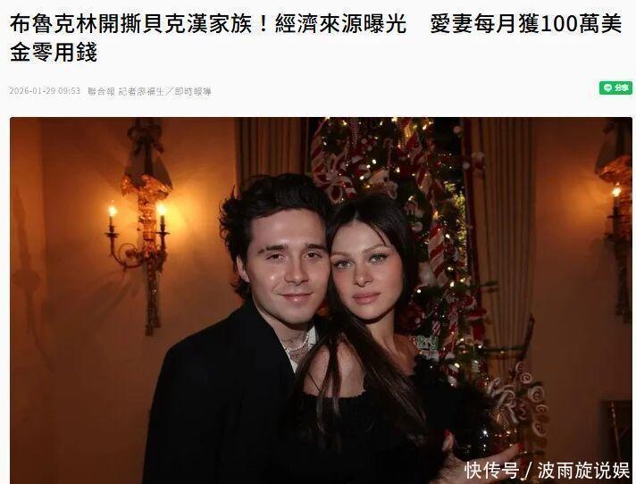 耐人寻味的是,经济独立宣言与事实形成微妙反差。近期美媒报道披露,布鲁克林与妮可拉每月可从其亿万富翁父亲纳尔逊·佩尔茨手中获得高达100万美元的生活津贴。现年31岁的妮可拉在财务上获得的资助,远高于布鲁克林过去从父母处所得。记者Marina Hyde在播客中透露:“就我所知,贝克汉姆家给的钱不少,但非天文数字。他们一直希望儿子能自立。”她更引用据称是纳尔逊·佩尔茨对贝克汉姆夫妇说过的话:“我每月给我女儿一百万美元的零花钱。”